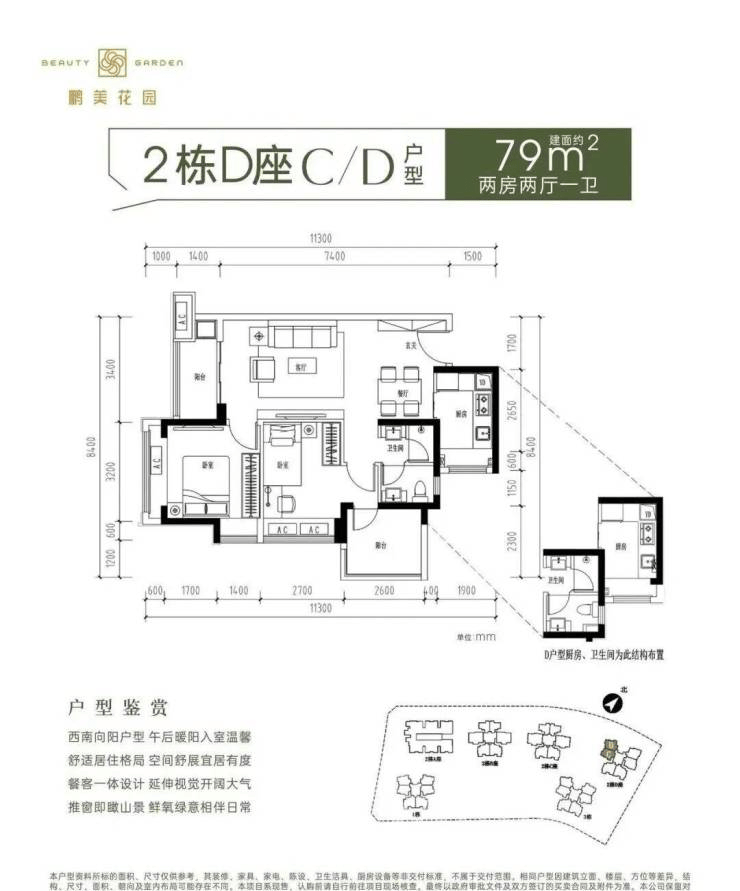 大鹏,鹏美家园计划在2026年5月份取证入市,本次将首推2栋C/D座,面积有65㎡的2房,79㎡的3房1卫,89㎡的3房2卫,93-113㎡的4房2卫户型,共372套房源,价格方面可以参考旁边的二手房花样年家天下,近期的成交均价在2.2万/㎡,这次鹏美家园开盘预估2房总价135万起,3房总价165万起,4房总价200万起,现房带精装交付。