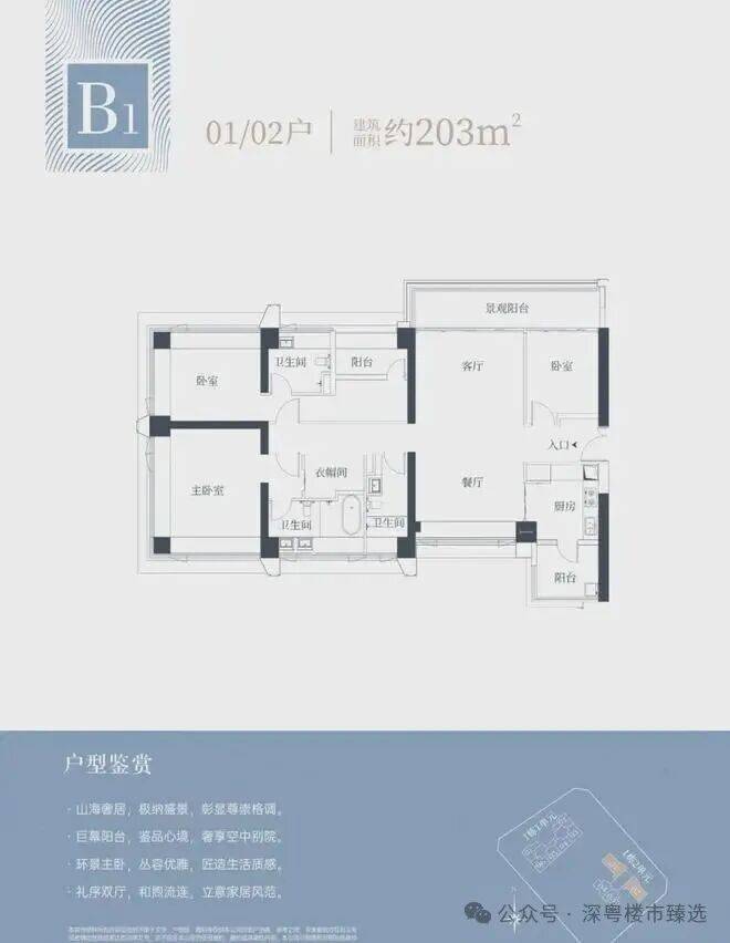 1栋二单元B1户型:面积约为203㎡;