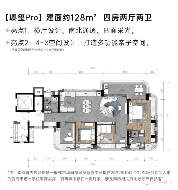 瑧玺pro:128㎡4房,在尺度、功能及空间结构上实现较好平衡