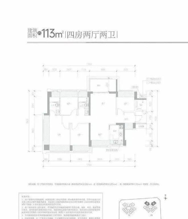 113㎡的4房2厅2卫,设计的竖厅南北通透格局,客厅4米开间,进门独立玄关,4个卧室分别做到了4米/2.8米/2.7米/2.6米的宽度,U型厨房,公卫三段式分离设计,得房率约:95%(包含赠送),阳台主朝西北或东北向,看科学公园景观。