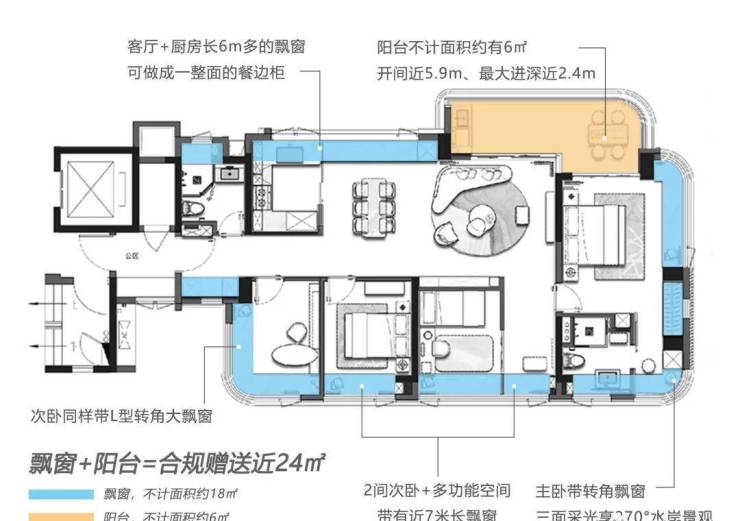 ‘自带270°水岸观景飘窗,比别人多赏一面风景自带270°水岸观景飘窗,整条前湾河一览无余,视野一直延伸到葱郁的南山。