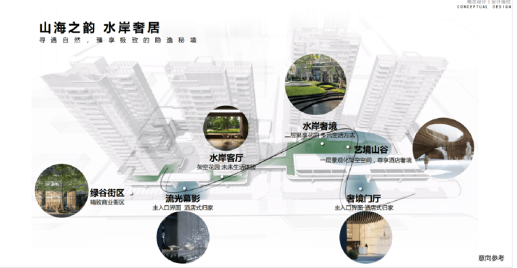 【双层架空层设计】瑧玺不惜成本将小区花园2层进行搭板架空园林设计,不仅打破园林空间限制,还可在视线上与前湾河公园自然景观相呼应,打造“山海之韵 水岸奢居”主题景观空间。