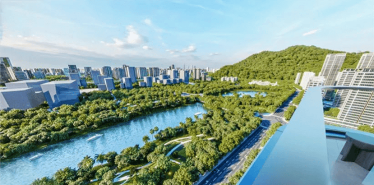 楼下就是河边公园,未来周边还有一条贯穿妈湾、连接山海的中央绿轴——丝路长廊,将打造为一条展示生态、休闲、创意、人文的步行绿廊