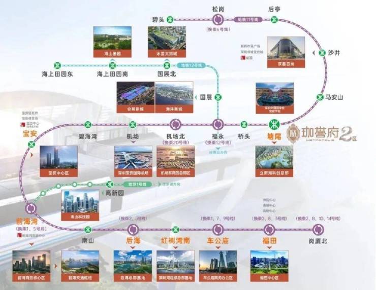 地铁:无缝连接11号线塘尾站,6站到宝中、7站到前海、9站到后海、11站到车公庙,便捷到达南山、福田