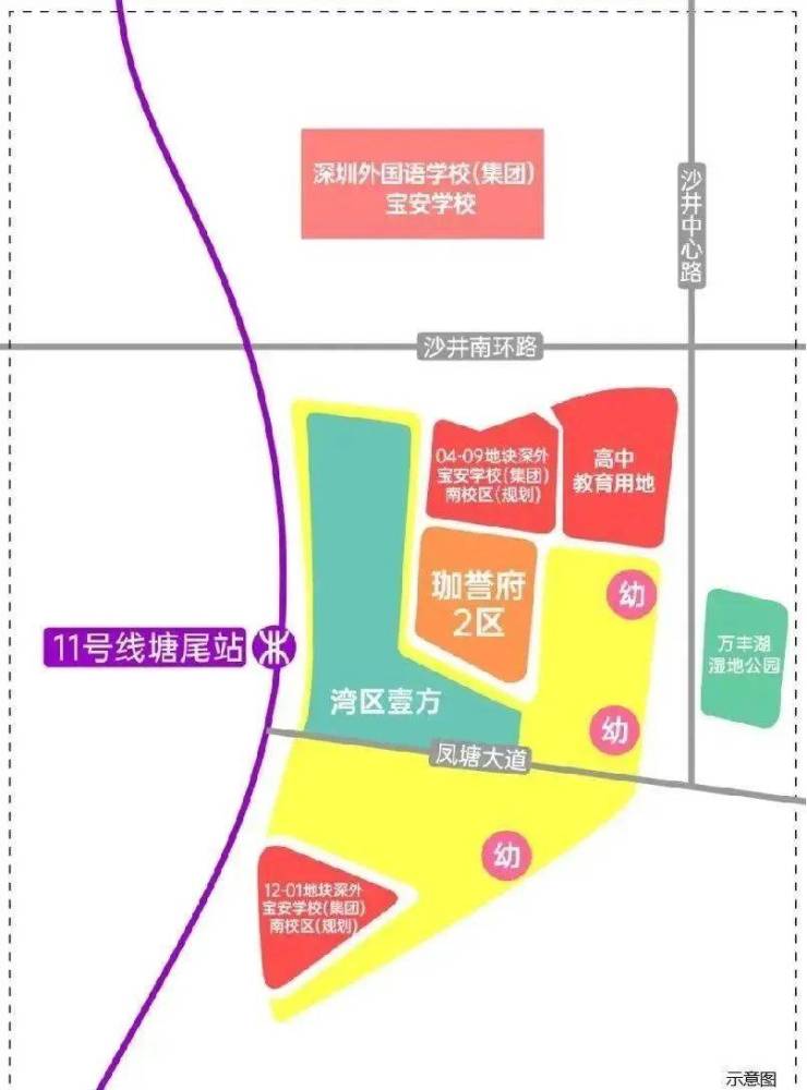 小区自带幼儿园,项目周边两所“深圳外国语学校”(宝安校区、南校区)。