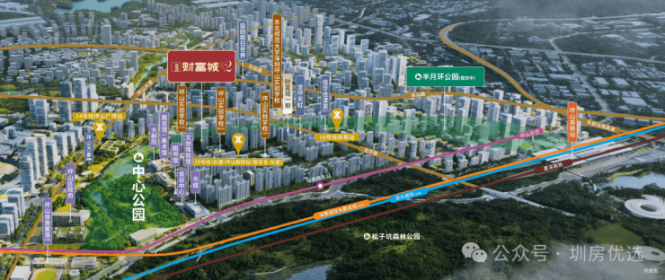 财富城2期所在的区位是整个坪山最核心的地段,汇聚了高铁+14/16号线双地铁+坪山实验学校+坪山中心公园+坪山天虹商场+坪山区政府+坪山体育中心+坪山图书馆,文艺馆等等,所有的市政配套基本都集中在这里,并且财富城2期也是该核心区域内唯一在售的新盘。