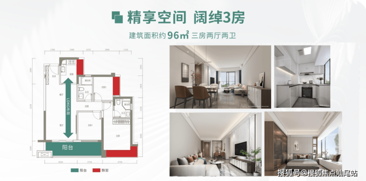 设计的是竖厅格局,客厅3.55米开间,LDKB一体化设计,3个卧室分别做到了3.75米/2.75米/2.4米的宽度,U型厨房,卫生间干湿分离,得房率:79.96%(不含赠送),阳台朝西南或东南向。