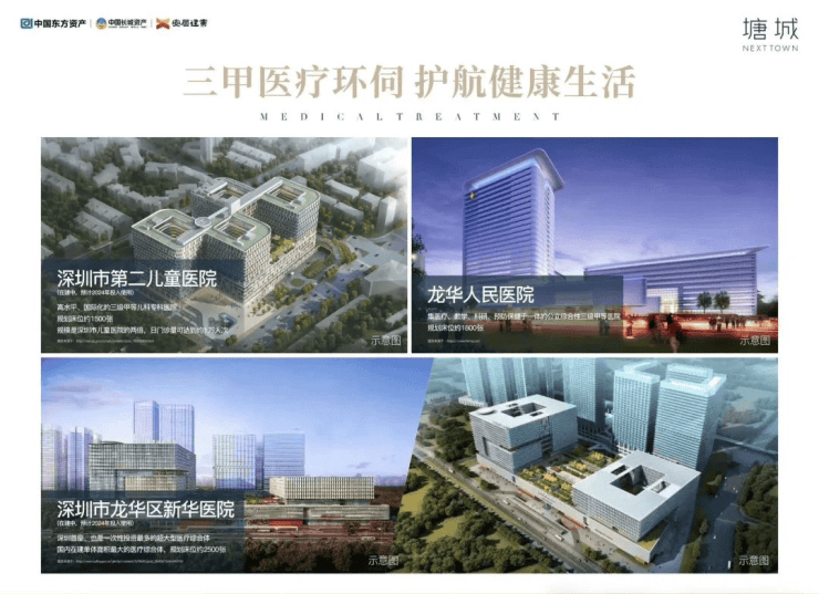 集萃深圳市新华医院(在建中)、龙华人民医院、深圳市第二儿童医院(在建中)、广州医科大附属医院(规划中)等市属公立三甲医院高标准医疗服务体系,护航健康生活。