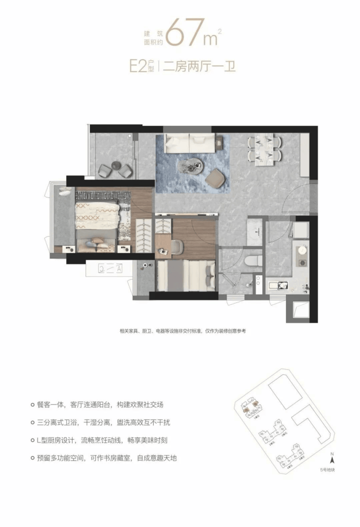 【E2户型67㎡二房两厅一卫】