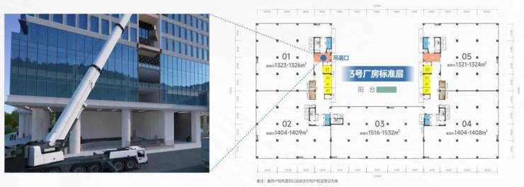 🛗每层配置2个吊装口(首层除外),并在地面预留吊装场地,1.2米卸货平台,可满足35吨吊车(车+装载货物),解决大尺寸、大重物产品电梯运输问题