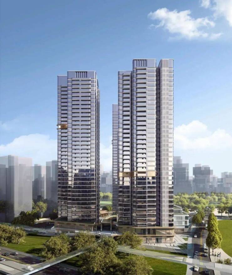 小区有485套纯住宅,车位595个,容积率5.14,共有三栋住宅,每栋做了36-37F高的4梯5户设计,每户都有专梯入户空间