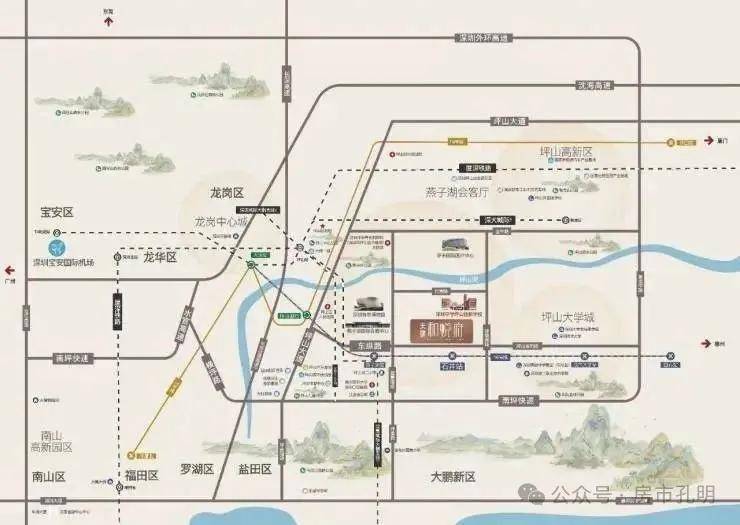 2城轨:深大城际坪山站约4KM(在建中)、近深惠城际大鹏支线,通达大湾区。