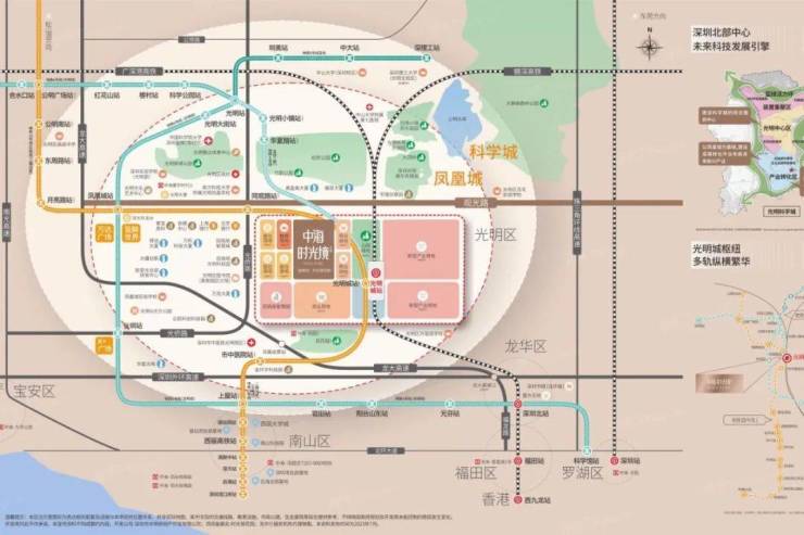距离在建的13号线同观路站约600米,去光明城站(高铁+地铁站)步行约500米,未来地铁去南山很便捷,出门就是主干道观光路,尅可以很快转上光明大道驱车前往中心区。