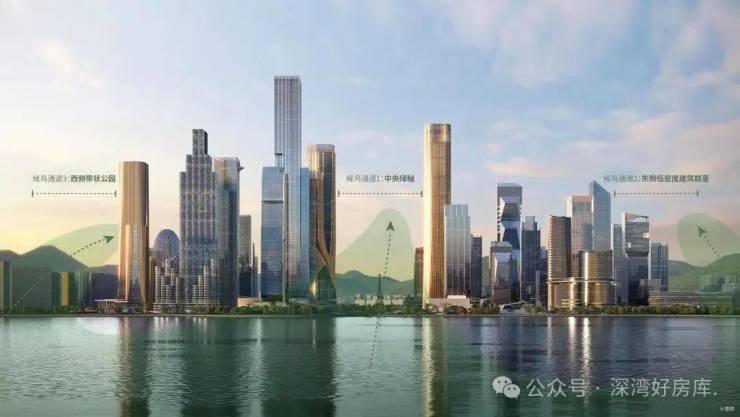 从片区规划到单体建筑方案都是由深圳政府统筹拍板,整体规划设计方案“一芯双核,十字生境”,由从全世界的76个投标中优选出来的3家结合而成。