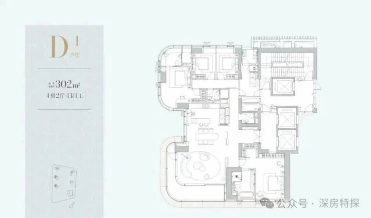 360㎡套内303㎡4房4卫预计6000万起步