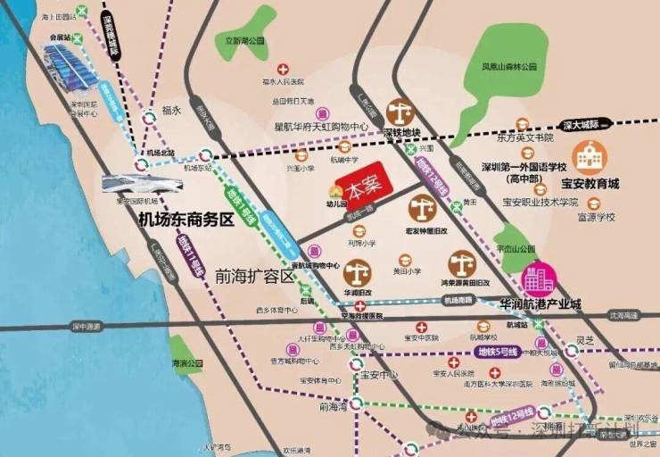 项目自身建有约1600㎡的6班幼儿园,还紧临航瑞中学、利锦小学、黄田小学等学校,教育氛围浓厚。其中,黄田小学是省一级学校,利锦小学是宝安区政府投资约1.29亿重点打造的公办学校,师资力量雄厚。