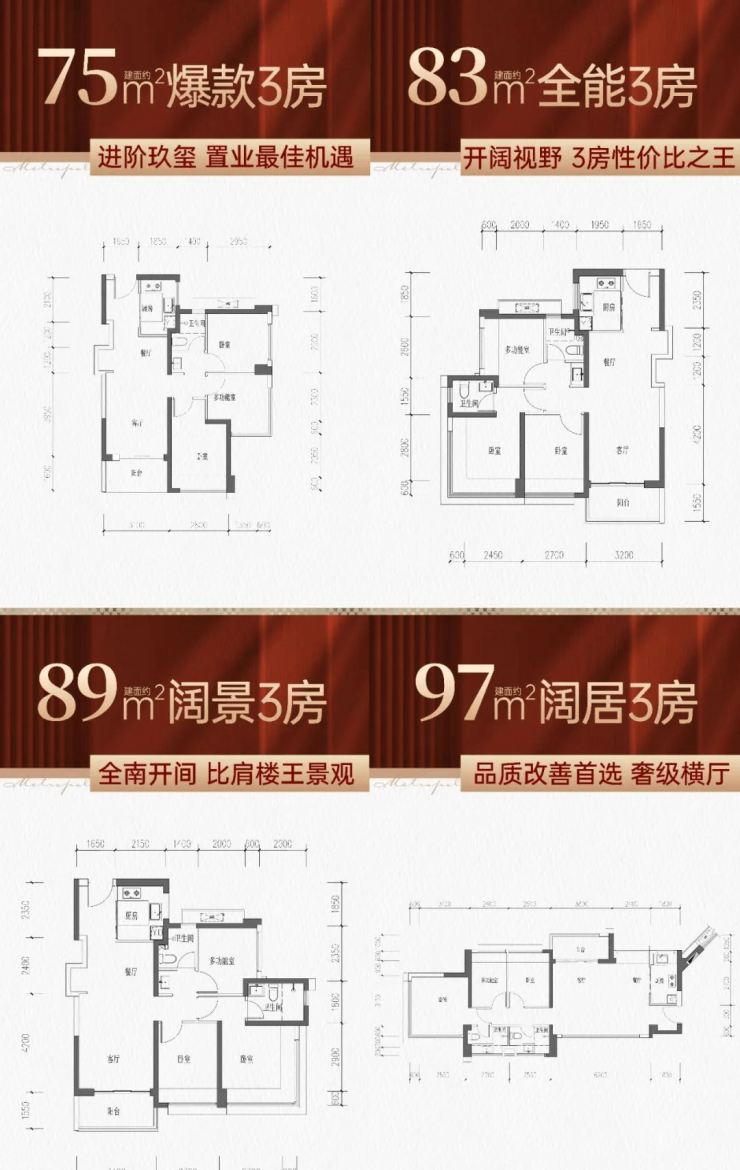 建面约77㎡-93㎡全能三房【新品户型鉴赏】