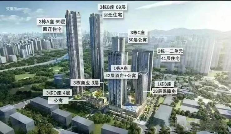 2、超高层,最佳景观没有给到住宅,而是给到2栋超高层回迁房