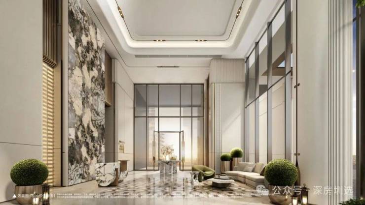 约9m高臻奢大堂,精研艺术与生活交融之美,匠心雕琢金属与石材质感,让归家之路成为艺术巡礼。