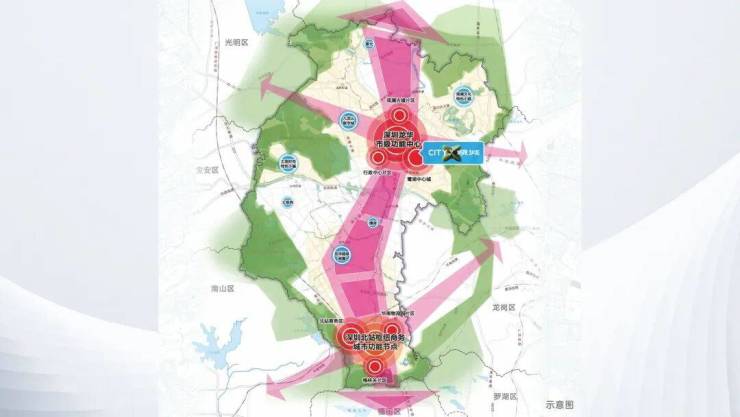 项目隶属鹭湖中心城,点睛龙华北中心,规划为深圳市级功能中心,与北站国际商务中心构筑龙华南北“双中心”格局,升级“行政+科技+文化+生活”综合服务功能,成为深圳北部新中心。(信息来源:深圳市龙华区国土空间分区规划(2021-2035年)草案)