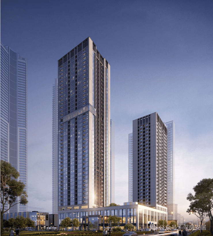 占地4.2万㎡,容积率6.63,分为两期不同地块。一期为1栋A座为150米高公寓+酒店、1栋B座为92米高保障房、2栋A/B座位为138米回迁住宅。