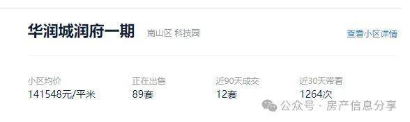 据数据显示,片区热度最高的二手房——华润城润府一期,成交均价14.2万/平。近30天内带看人次高达1264次,即小区日均看房人数高达42人次/天,足以证明“最牛街道”的购买力和热度一直都在。