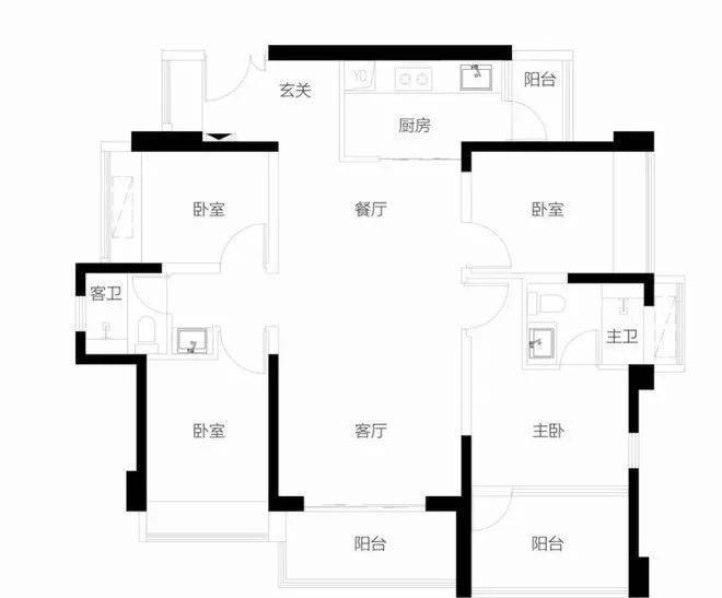 【115-118㎡4房2卫户型】