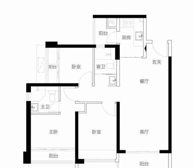 客厅朝西带阳台,2房朝西,1房朝南,1房朝北 单价区间:7.5-7.7万 总价区间:885万-910万