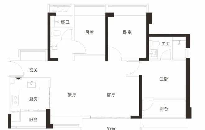 【103-105㎡3房2卫户型】