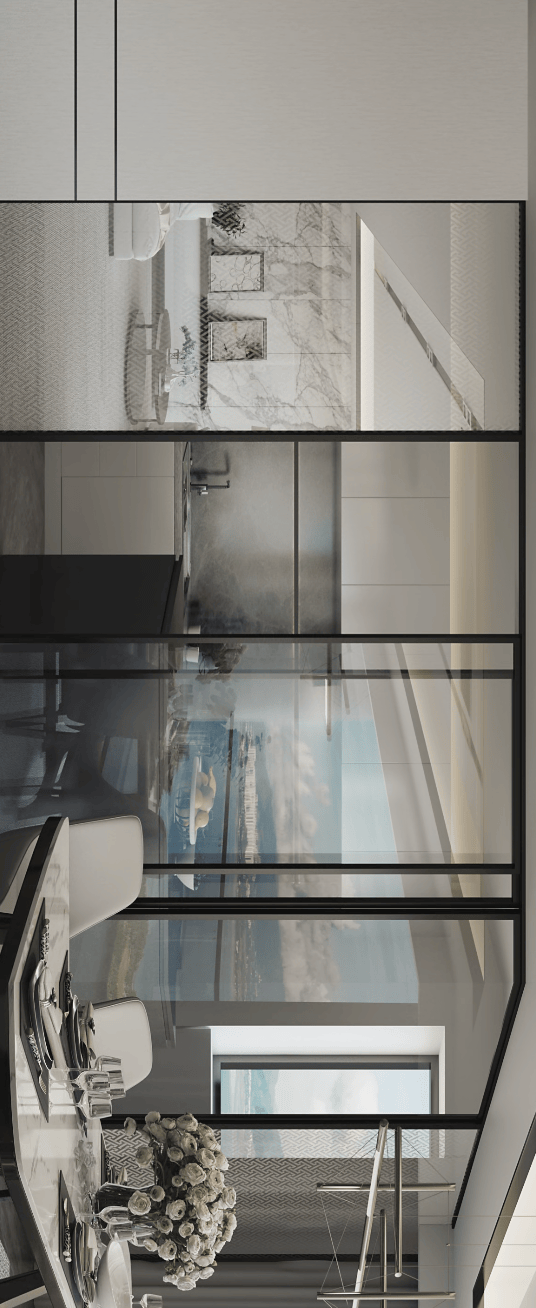 所有340㎡户型位于B栋28-52F正东朝向,登高而招,向海而生,无言的霸气。