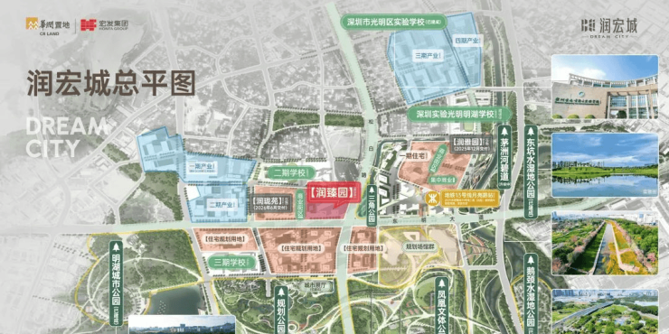 润宏城,建面约320万㎡地铁上盖 公园优教大城,集轨道交通、优质教育、城市公园、创新产业、品质居住于一体,打造“宜居、宜业、宜游”之城,引领深圳光明城市迭代。润宏城·润臻园属于润宏城二期住宅开发项目。润宏城整体自2023年动工建设以来,2年时间大城雏形已现,一期学校深圳市深实验明湖学校在建中、茅洲河示范段已在升级中、东明大道已开通等取得显著进展,正加速兑现中。两年时间里,润宏城兑现了2大住宅项目,获得超3200批业主的认可,2025年年底开始陆续交楼入住。
