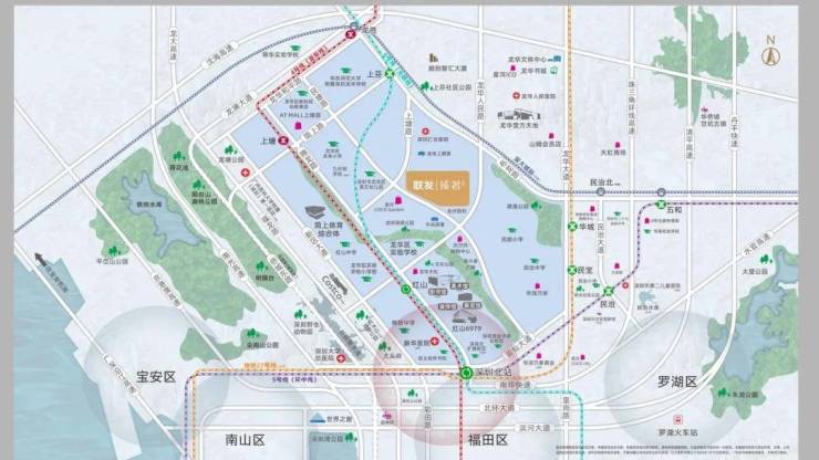 人文配套四馆一体:项目周边汇聚国际级人文配套,深圳市美术馆新馆、深圳图书馆北馆已投入使用,演艺中心、龙华城市客厅和简上体育综合体等。