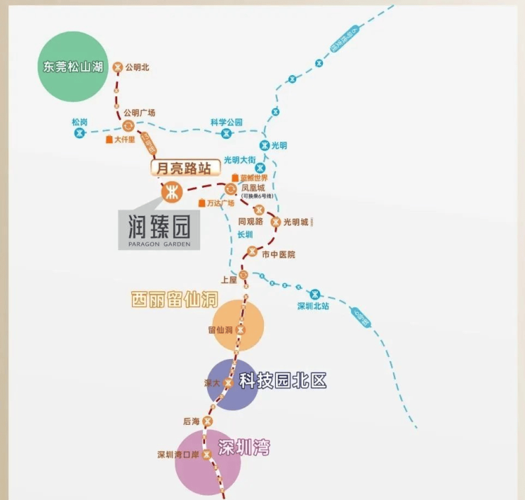 立体交通:轨道交通直线距离约600m到达地铁13号线月亮路站(建设中),1站凤凰城,9站到南山,2025年将推动13号线二期(北延)建成通车(信息来源:宝安日报)。