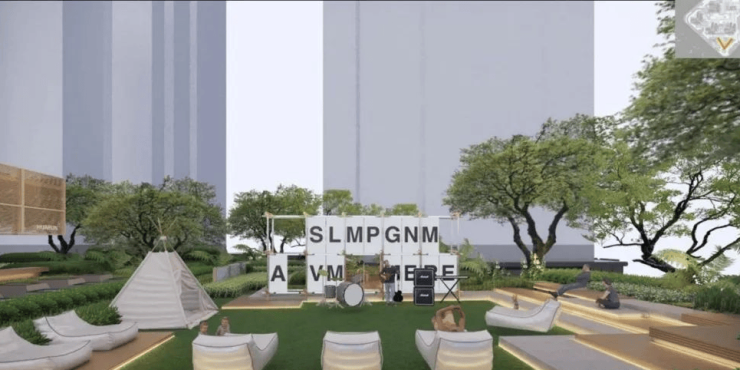 【抬高式檐上浮岛花园露台】:约1000㎡,位于商业街区顶层,业主私享花园露台,提供丰富空间活动区域,是邻里交流娱乐的理想场所。