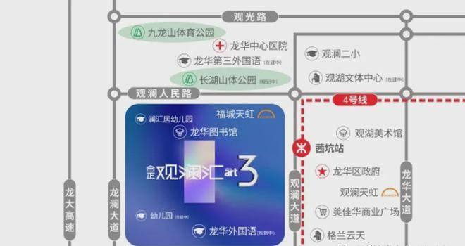 人文娱乐:龙华区图书馆、观湖美术馆、观湖文体中心(在建中)、鹭湖人文四馆(规划中,含图书馆、群艺馆、大剧院、科技馆),打造家门口文化新地标。