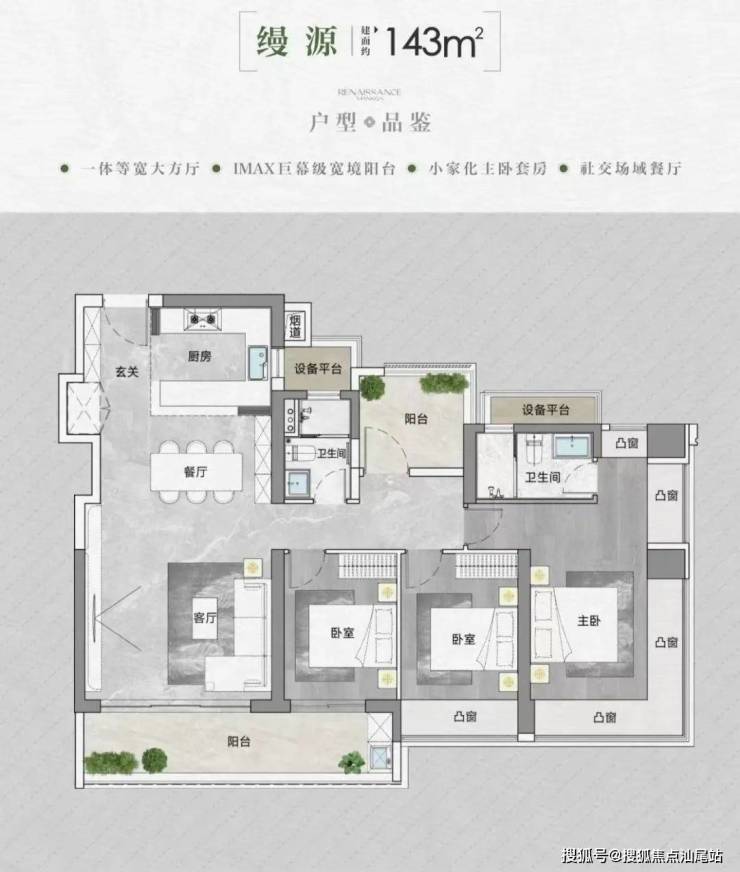 产品方面,打造约90-95-105-143㎡ 新规产品3-4房,使用率极高。