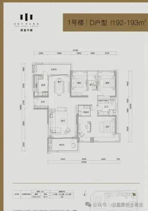 D户型:192-193㎡3房2卫(可改4房),套内面积151㎡,户型与B户型类似,同样享受香蜜公园景观。