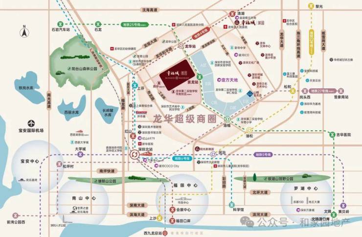 项目占位龙华超级商圈几何正芯,龙华商业中心城市更新北片区,傲踞天赋C位地块。
