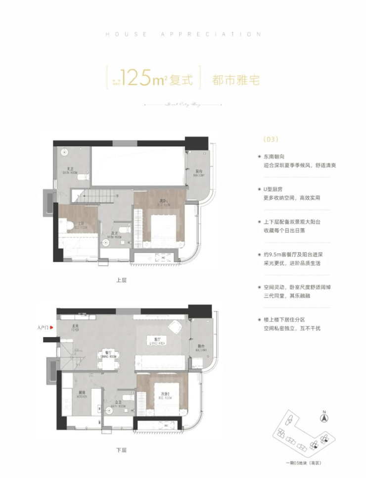 125-271-440㎡复式,125平是市面上少有的小面积复式产品。