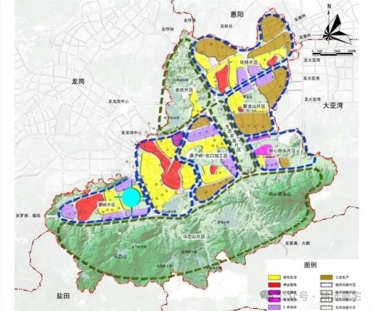 坪山以坪山大道为中轴,产业、居住、商务、市政、产业依次布局,项目片区以距离市政中心2KM、商务中心1KM,成为坪山居住中心。