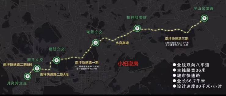 高速方面:距离深圳外环高速坪山高速入口2.8公里,上高速7,8分钟,外环高速可直达深圳宝安,光明,只要50分钟到1个小时20分钟!到深圳龙岗只要20分钟!