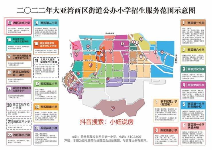 教育配套,根据大亚湾教育局官网可以看得到,小学划分的是距离项目500米的道南小学,中学划分的是距离项目的3公里的西区实验学校初中部!