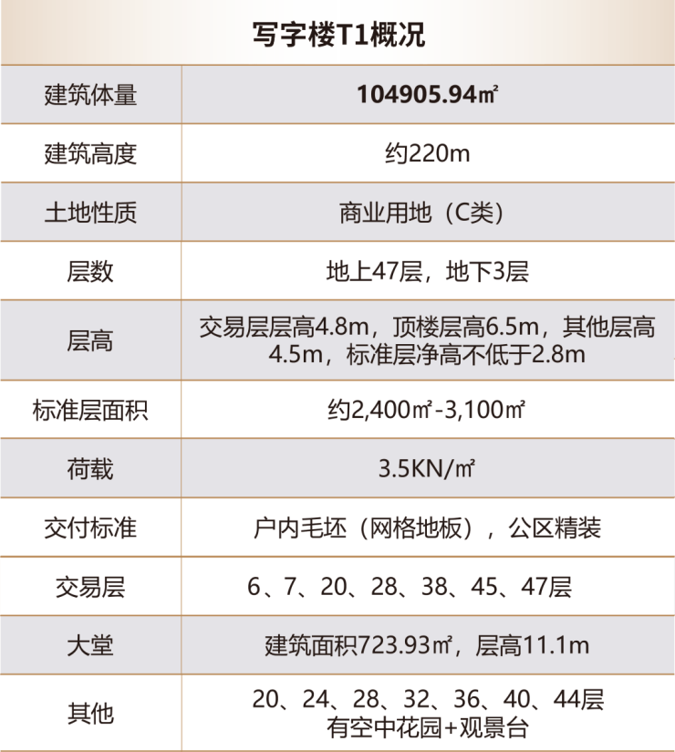前海交易广场T1栋,以220米楼高傲然矗立于前海核心区域。20层以上每4层设置有空中花园+观景台,可远眺城市天际线与壮阔海景。地上共47层,标准层面积2400-3100平方米,并设有7个交易楼层(层高4.8m)。