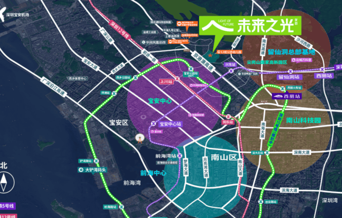 尖岗山片区的优势也十分明显,南山、宝安双区核芯,受到前海-宝中新中心、留仙洞总部基地、南山科技园三大核心板块产业及配套辐射。未来之光项目10km范围内,保守估计汇聚了超200万的高净值产业人群。