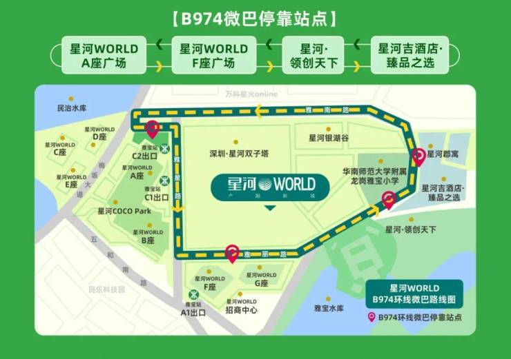 星河联合东部公交,共同推出园区公交线路【B974环线微巴】,引入园区交通“微循环”系统,帮助企业员工打通公司到地铁口的“最后一公里”。