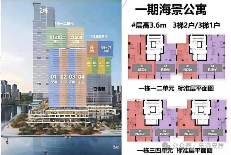 500-700㎡超大户型:700㎡户型位于1栋一、二单元高区33-38层,由01+02户型组成。户型宽敞奢华,可尽享海景与城市景观,为高端客户提供极致居住体验。