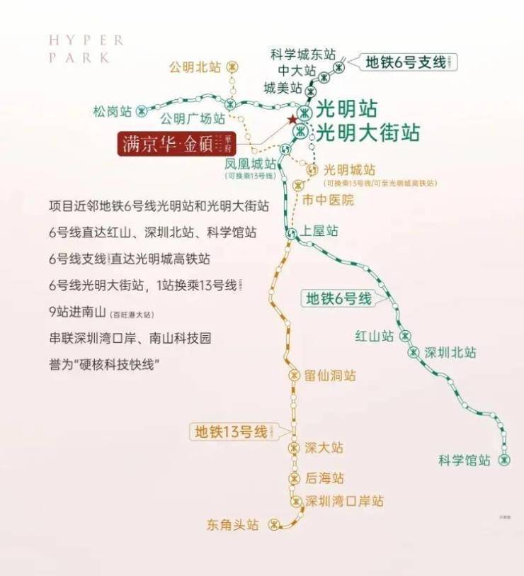 满京华金硕悦府,是光明将入市的第5个新规楼盘100%得房率,科学公园+光明湖景观,且做到了户户朝南或南北通透格局,6号地铁线光明站距离仅400米。