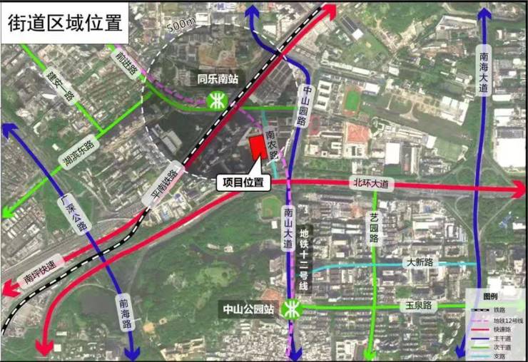 项目距离12号线同乐站直线距离约300米,周边还有在建的15号线同乐关站,贯穿前海、后海、南山、宝安等重要片区,环经济发展核心区域。