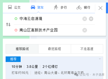 根据导航显示,从项目出发开车去科技园和留仙洞总部基地仅需10分钟,去前海差不多是6分钟,通勤十分便利。