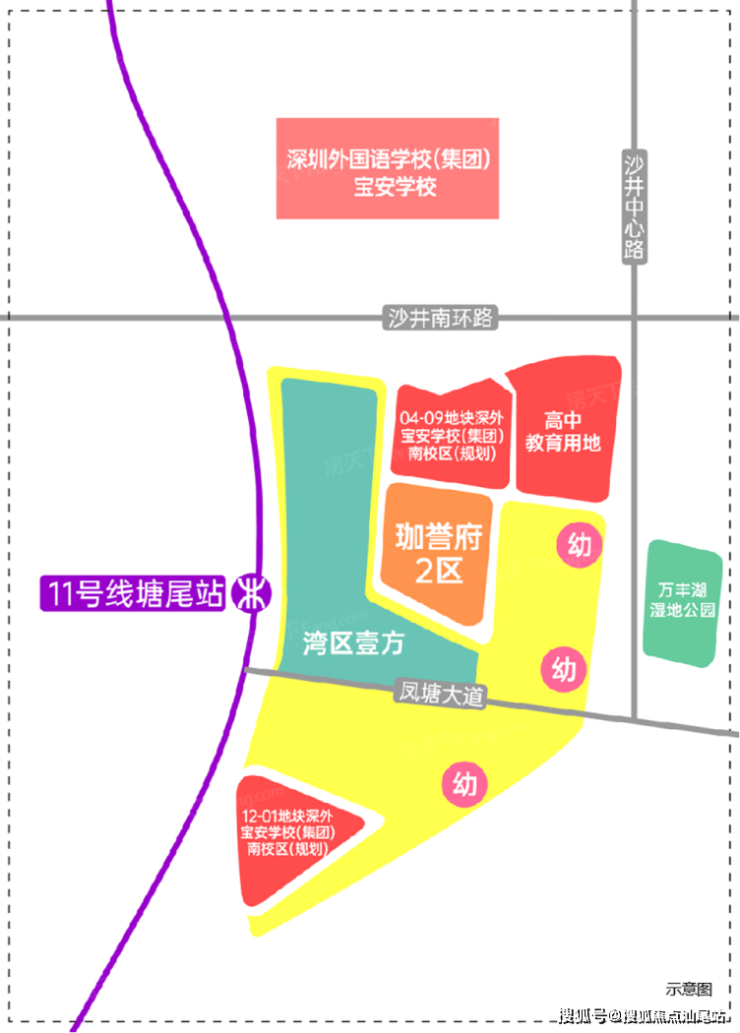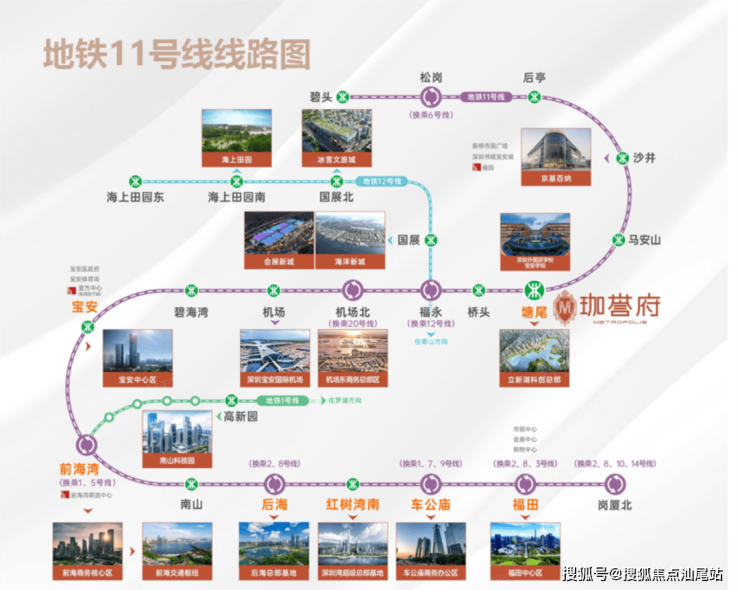 地铁配套:项目家门口就是11号地铁线“塘尾站”,4站到宝安机场,6站到宝中,7站到前海湾,8站到南山,11站到车公庙。